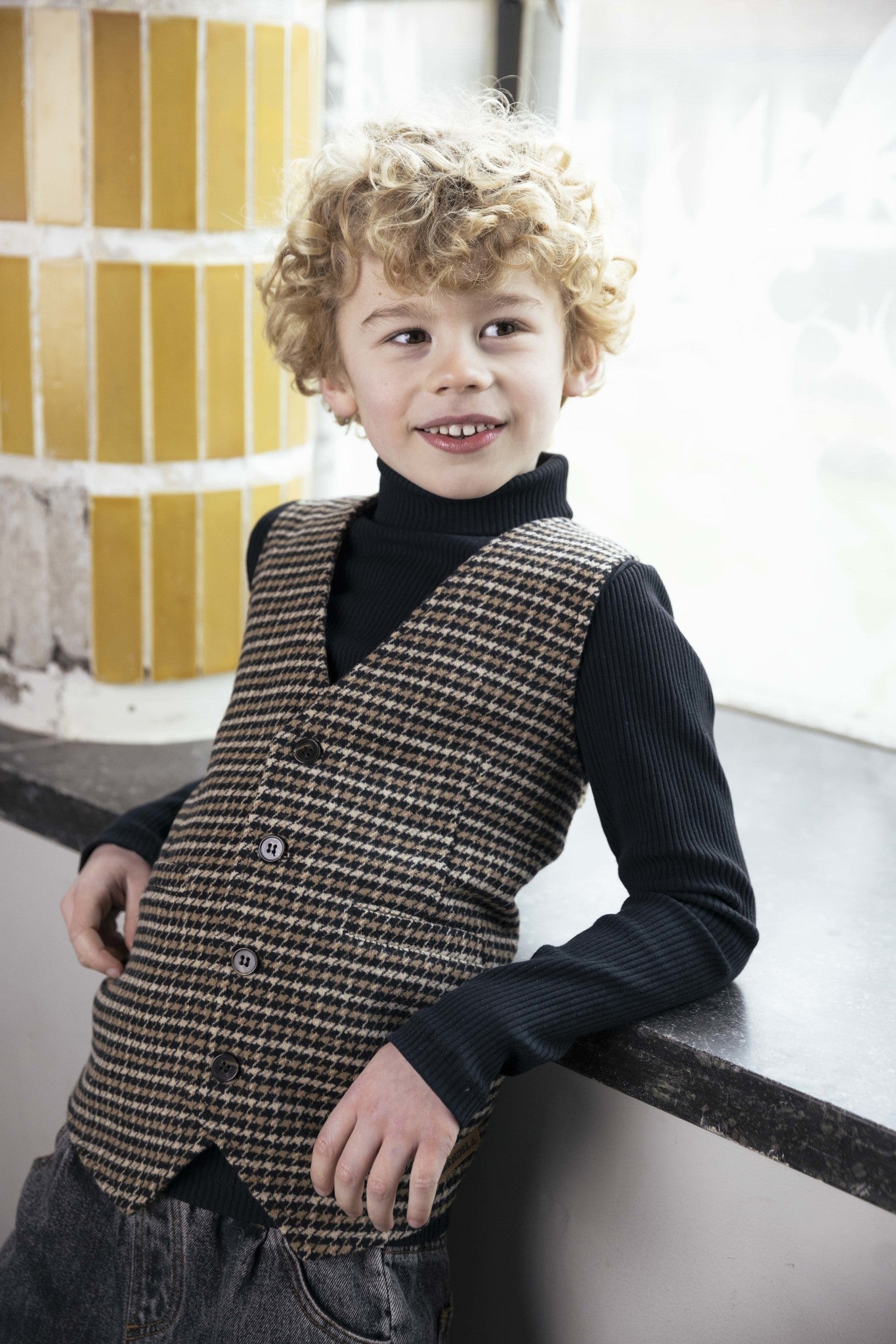 De AM.Travis.01 is een pied de coq gilet gemaakt van 100% polyester.