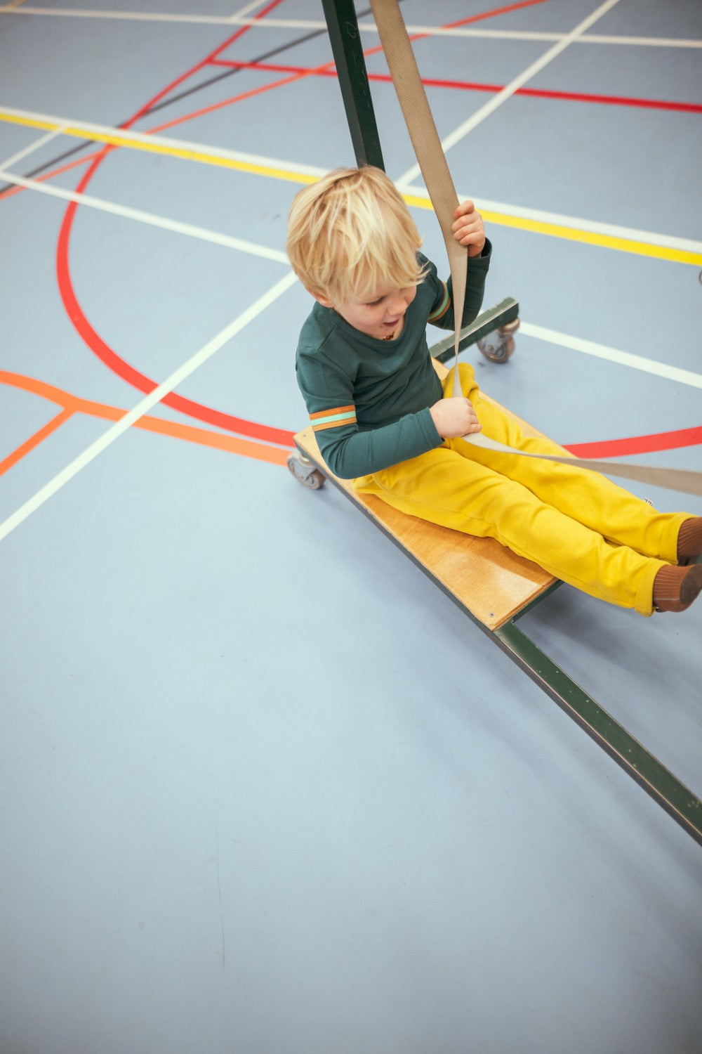 Groene longsleeve met strepen op de mouw.