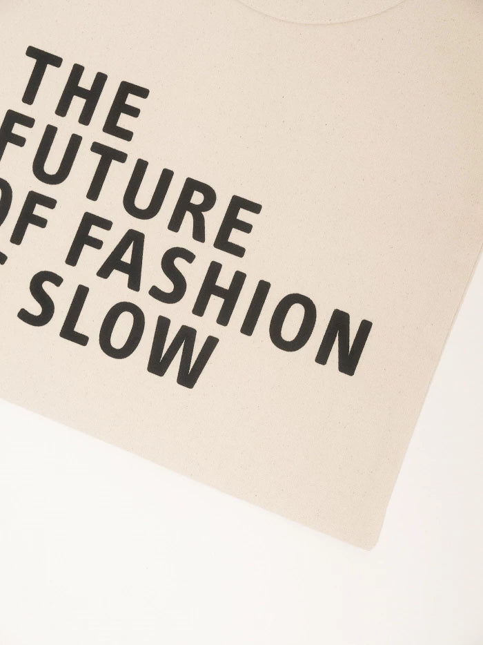 De jute tas met een statement: The future of fashion is slow. Onze tas van robuust biologisch katoen maakt een sterk statement. De hoogwaardige tas kan steeds opnieuw worden gebruikt en ruimtebesparend worden opgeborgen.
