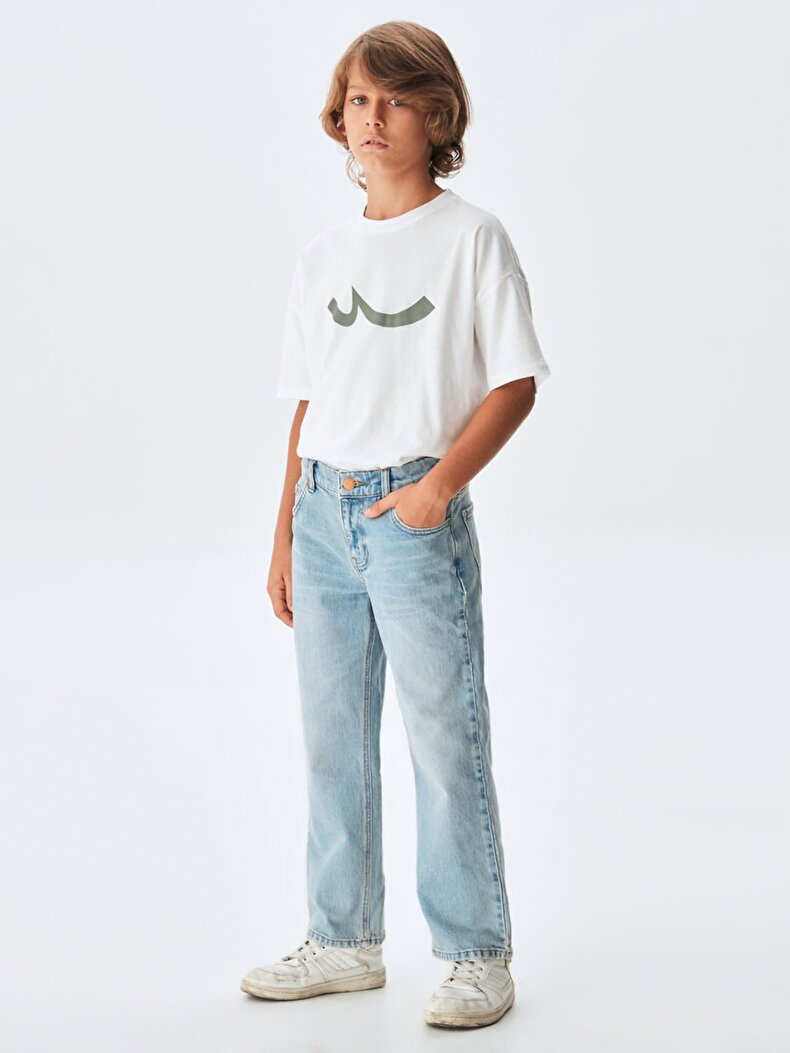 Jeans Lichtblauw met aanpasbare band.